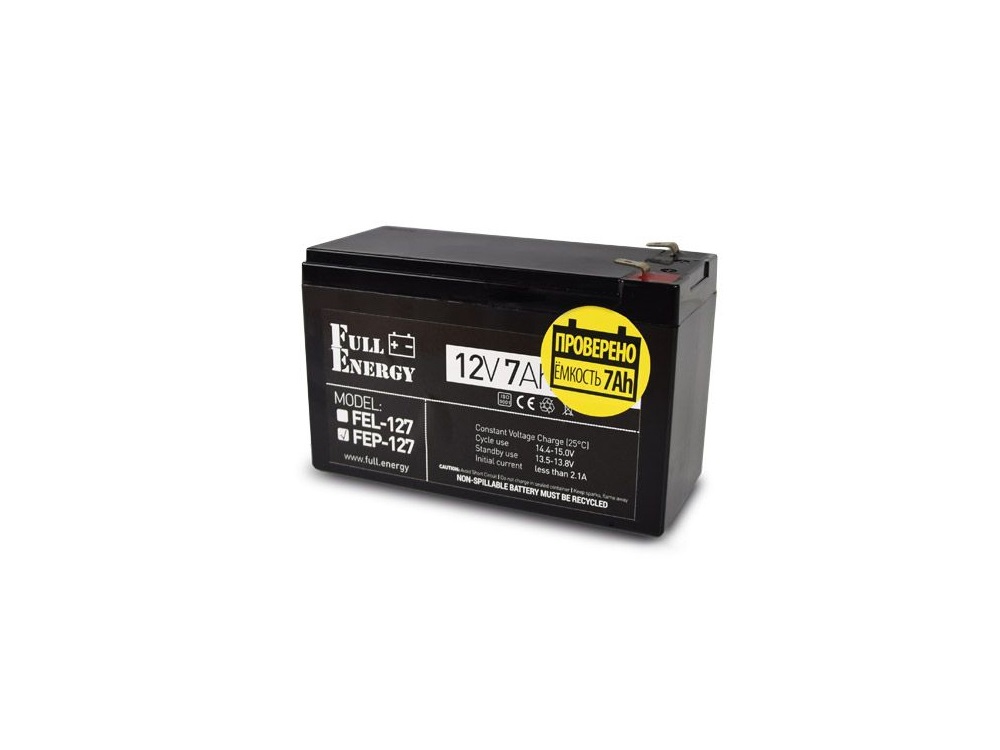 Свинцево-кислотний Акумулятор FEP-127 виконаний в герметичному корпусі за технологією AGM (Absorbent Glass Mat). Дана технологія передбаячає використання не рідкого, а абсорбованого електроліту. Безпечний для використання в житлових приміщеннях, так як AGM акумулятор практично не виділяє шкідливих або небезпечних газів і не вимагає обслуговування протягом всього терміну служби. Акумулятор 12в 7Аг краще справляється з підвищеними навантаженнями і відрізняється більш тривалим терміном експлуатації в порівнянні зі свинцевими батареями.