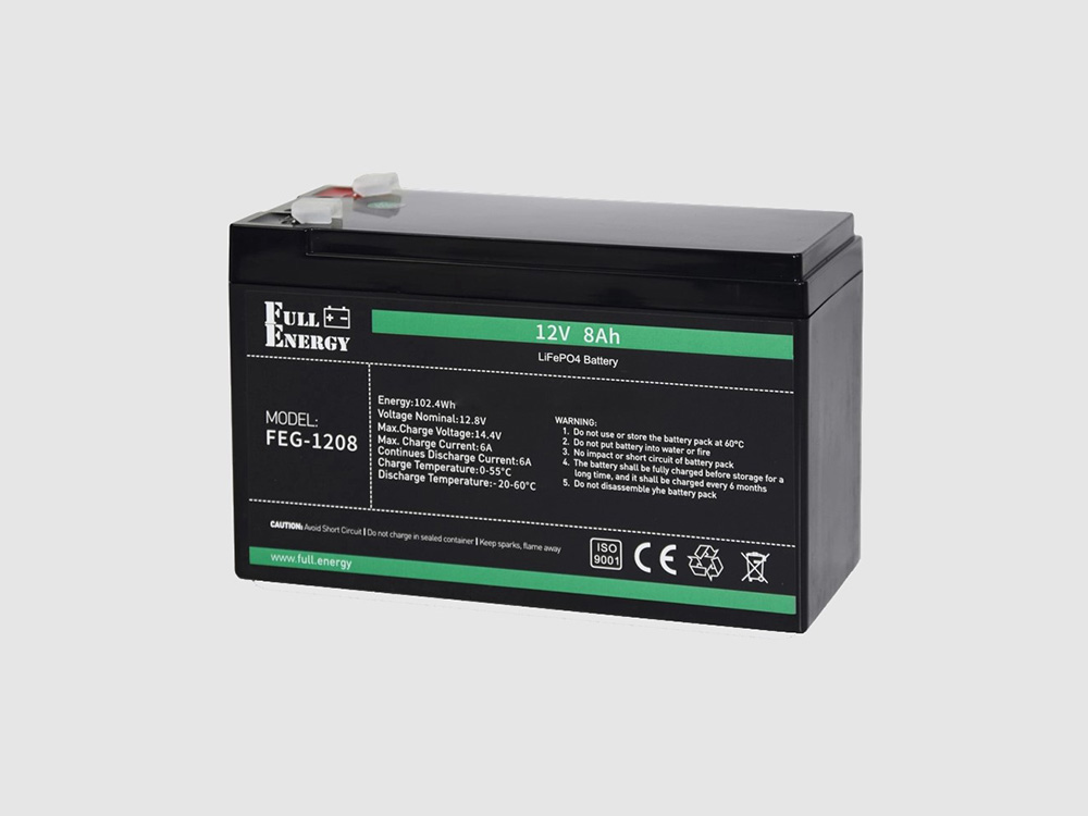 Літій-залізо-фосфатний акумулятор 12В 8Аг Full Energy FEG-128 виготовлений за технологією LiFePO4. У технології використовується мінерал сімейства олівін – він зустрічається у природному середовищі, не токсичний, термостійкий. Акумуляторні батареї FEG-128 виконані у герметичному корпусі та застосовуються для встановлення у безперебійні блоки живлення, прилади охоронної та пожежної сигналізації, комп'ютерні безперебійники (UPS) та в якості накопичувачів енергії в системах автономного електропостачання.