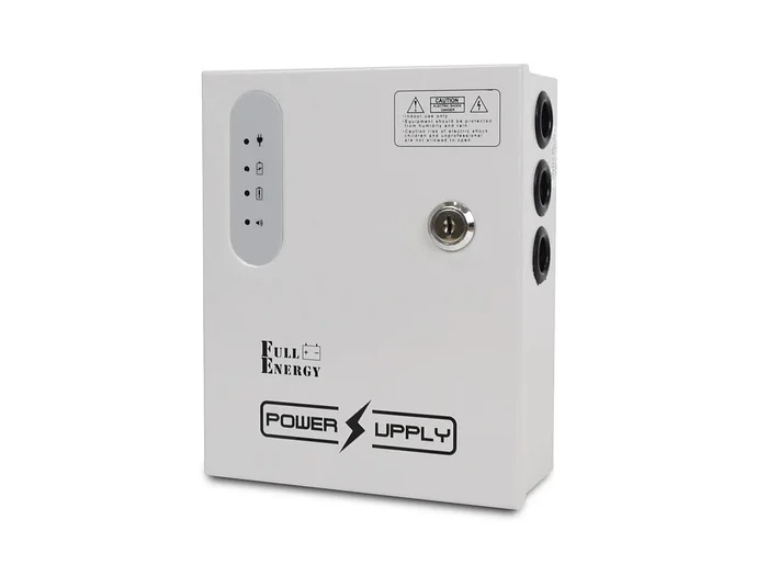 Блок безперебійного живлення Full Energy BBG-124/4 застосовується для забезпечення безперебійного живлення в системах відеоспостереження, контролю доступу, сигналізації та інших охоронних системах, де потрібно резервне живлення на 12 В. Вихідна напруга 12В постійного струму. Максимальна сила струму на виході 4 А (4 канала з запобіжниками і індикацією). Є захист від короткого замикання на виході, від перевантаження по струму, по напрузі, від перезарядження акумуляторної батареї. Безперебійний блок живлення вмонтований в металевий бокс з індикацією і замком (в комплекті 2 ключа). У ББП можна встановлювати акумулятори ємністю 1,2Ah, 2.2Ah, 4Ah, 7Ah.