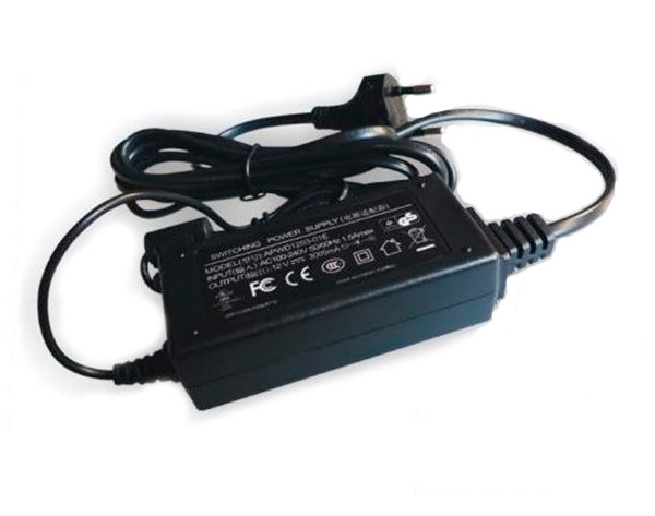 Стабилизированный блок питания APWD1203-01C. Bыход: 12В/3А, разъем питания; вход: ~220, сетевой шнур с вилкой в розетку.
