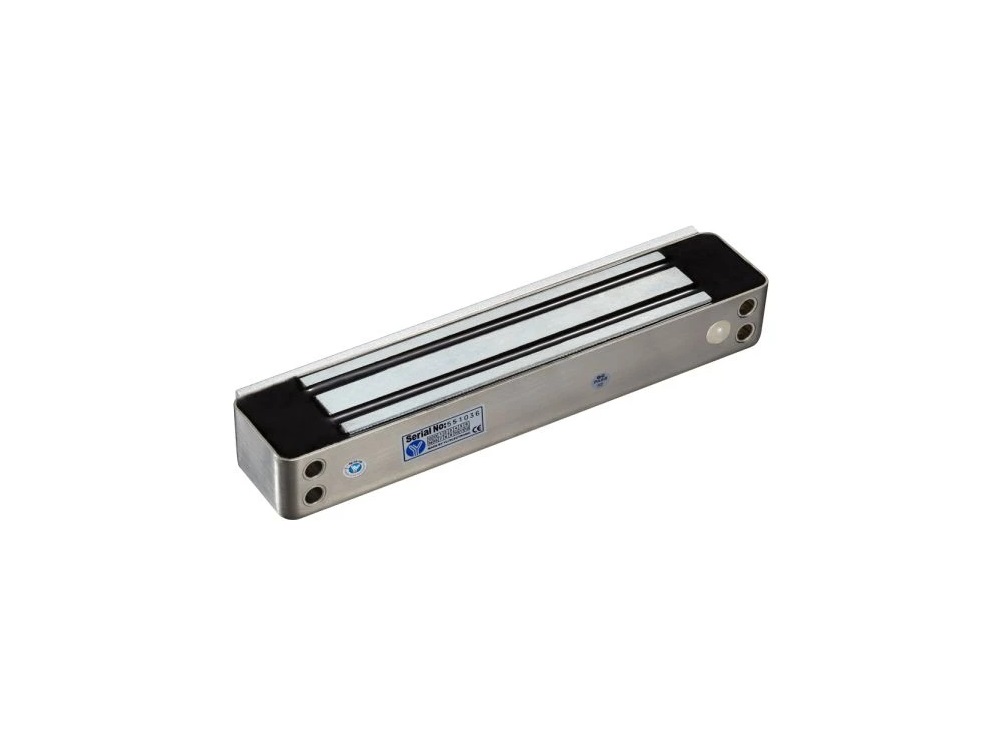 YM-280W-S – накладний вологостійкий електромагнітний замок з силою утримання до 280 кг на розрив з датчиком стану замка. Є сухі контакти для визначення стану замка (NO,COM). Електромагнітний замок встановлюється на дверну коробку, відповідна планка – на двері. При подачі живлення (DC12V/DC24V) – замок примагнічує відповідну планку, надійно зачиняючи двері. За відсутності живлення – замок відмикається, що відповідає вимогам протипожежної безпеки.