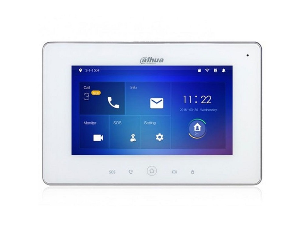 IP видеодомофон Dahua DHI-VTH5221DW-С-S1 предназначен для контроля доступа в жилое или офисное помещение. Данная модель оснащена 7-дюймовым сенсорным дисплеем, с помощью которого можно управлять меню и функциями домофона без использования кнопок. Подключение к сети производится с помощью сетевого кабеля и по Wi-Fi. Есть возможность переадресации вызова с домофона на смартфон при наличии подключения к сети Интернет. Запись снимков с момента разговора может сохраняться на карту памяти до 32 Гб.