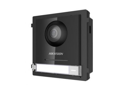 Панель виклику Hikvision DS-KD8003-IME1 може встановлюватися накладним або врiзним шляхом за допомогою накладної або врiзної монтажної рамки. Камера даної моделi має розподiльну здатнiсть 2 мп та надширокий кут огляду 180° за горизонталлю.