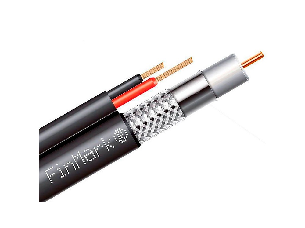 Комбинированный кабель (коаксиальный + питание) FinMark F5967BVcu-2x0.75 POWER предназначен для систем видеонаблюдения. По коаксиальному передаётся видеосигнал, по 2 жилам передаётся питание для видеокамер. RG-59+2*0,75 мм. кв., диаметр - 6.0+11 мм. Два варианта кабеля: белый для внутренней прокладки или черный для уличной. Длина бухты - 305 м.