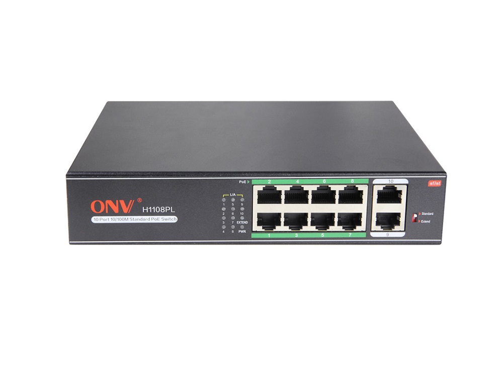10-портовый POE коммутатор ONV-H1108PL предназначен для подключения по сети и питанию ip камер видеонаблюдения с поддержкой технологии PoE стандартов IEEE802.3af, IEEE802.3at. Коммутатор оснащен 8 Fast Ethernet-портами с поддержкой PoE, 2 Fast Ethernet-портами для подключения к сети интернет или к вышестоящим сетевым устройствам. Поддерживается технология Extended PoE для передачи информации и питания на расстоянии до 250 м при пропускной способности до 10 мбит/с.