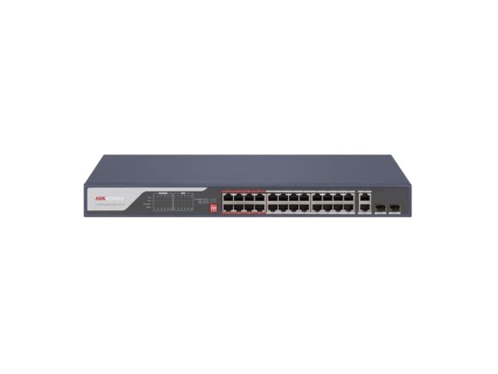 24-портовий керований POE комутатор Hikvision DS-3E0326P-E(C) дає змогу підключити по мережі і живленню ip камери відеоспостереження з підтримкою технології PoE стандартів IEEE802.3af, IEEE802.3at. Порти 17-24 підтримують передачу PoE на довгу дистанцію, порти 1-8 підтримують стандарт IEEE802.3at. Комутатор оснащений 24 Fast Ethernet-портами з підтримкою PoE та 2 Gigabit SFP-гніздами. Функція Watchdog допомагає автоматично відновлювати роботу комутатора при збої в мережі.
