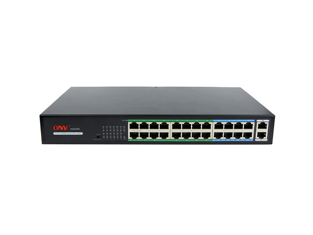 26-портовый POE коммутатор ONV-H1024PL предназначен для подключения по сети и питанию ip камер видеонаблюдения с поддержкой технологии PoE стандартов IEEE802.3af, IEEE802.3at. Коммутатор оснащен 24 Fast Ethernet-портами с поддержкой PoE, 2 Gigabit Ethernet-портами для подключения к сети интернет или к вышестоящим сетевым устройствам. Поддерживается технология Extended PoE для передачи информации и питания на расстоянии до 250 м при пропускной способности до 10 мбит/с для 8 портов PoE.