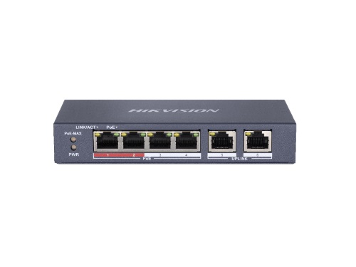4-портовий POE комутатор Hikvision DS-3E0106P-E/M призначений для підключення по мережі і живлення ip систем з підтримкою технології PoE стандартів IEEE802.3af, IEEE802.3at. Комутатор оснащений 4 Fast Ethernet-портами з підтримкою PoE, 2 Fast Ethernet-портами для підключення до мережі інтернет або до вищестоящих мережевих пристроїв. Комутатор підтримує підключення на відстані до 300 м при пропускній спроможності до 10 мбіт/с.