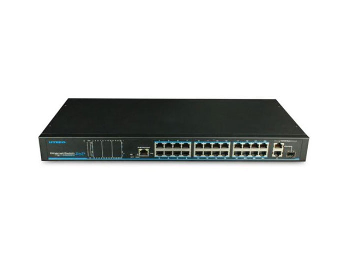 Неуправляемый POE коммутатор UTP1-SW24-TP420 - имеет 24 порта 100Base-TX с поддержкой PoE+ (30Вт на канал, 802.3at), и 2 гигабитных UPLINK порта, а также 1 дополнительный гигабитных Combo порт. Общяя мощность PoE до 370Вт. Он поддерживает управления PoE по веб интерфейсу и в режиме реального времени через LED дисплей. Устройство можно широко использовать в системах мониторинга безопасности видео, сетевых проектов и т.д.
