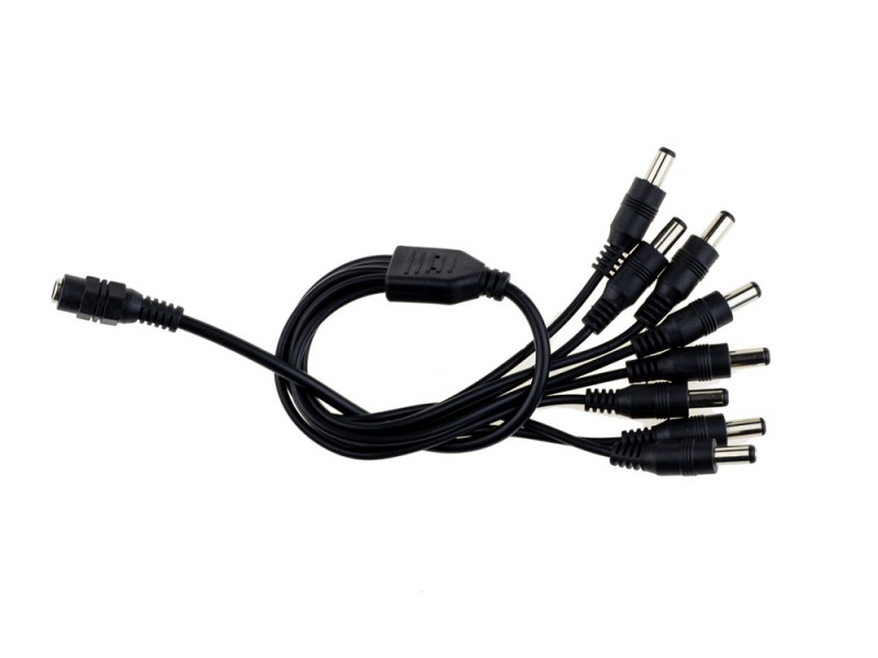 Разветвитель питания предназначен для подключения до 8 камер по питанию через 8 dc-female коннекторов к одному блоку питания с помощью 1 dc-male.