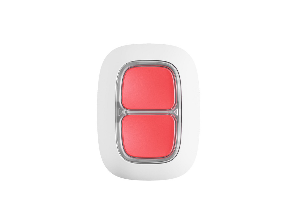 Бездротова подвійна тривожна кнопка Ajax DoubleButton призначена для ручного ввімкнення тривоги у разі виникнення небезпеки при знятій з охорони сигналізації Ajax. При натисканні двох кнопок пристрій відправляє тривожний сигнал на централь, вона відправляє тривожні повідомлення підключеним користувачам та пульту охорони (якщо ваша охоронна сигналізація до нього підключена). Тривожна кнопка захищена від помилкових спрацьовувань пластиковою перегородкою, завдяки чому, якщо натиснути випадково одну кнопку, тривога не підніметься.