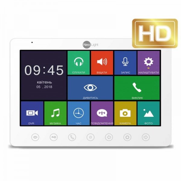 Neolight Gamma HD – видеодомофон в тонком пластиковом Slim-корпусе белого цвета с поддержкой входящего видеосигнала в разрешении 1080P, благодаря чему пользователь получает картинку хорошего качества на записанном видео и в режиме просмотра со скоростью 25 кадров в секунду. Важным преимуществом данной модели станет большой 10-дюймовый дисплей с разрешением экрана 1024х600.